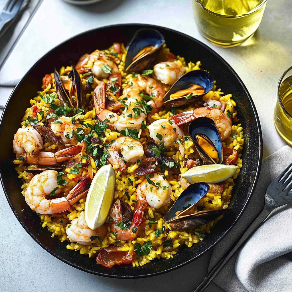 Classic Spanish Paella is a vibrant, flavorful dish that brings the warmth of Spain to your table. Bursting with succulent chicken, tender shrimp, and aromatic saffron, this paella transforms simple ingredients into a stunning feast perfect for gatherings or family dinners. With its colorful presentation and rich, layered flavors, it’s an unforgettable culinary experience that will impress your guests and delight your taste buds.