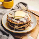 These Cinnamon Roll Pancakes are perfectly fluffy with gooey swirls of cinnamon goodness throughout each one! Drizzle generously with cream cheese icing before serving to make them truly irresistible.
