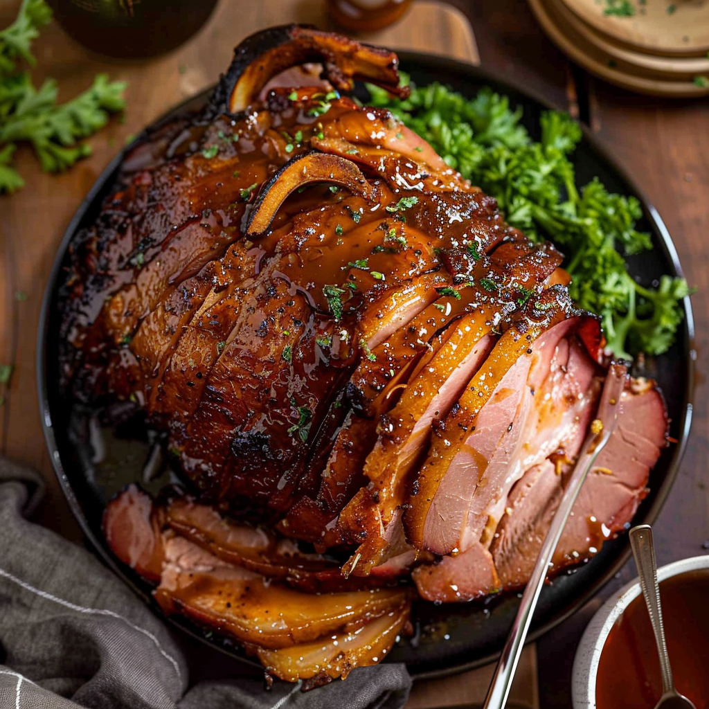 In conclusion, this delightful Maple-bourbon glazed ham with pineapple is more than just a meal; it’s an experience bursting with flavor and tradition. With simple adjustments and personal touches, you can tailor this dish to suit your taste while impressing friends and family alike. Remember that preparation is key—so get everything ready early—and enjoy every moment as you savor this beautiful centerpiece at your next gathering!