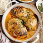Smothered Chicken is a comforting Southern dish where seasoned chicken is browned and then simmered with a rich gravy made from sautéed onions, garlic, and spices. It’s typically served over rice or mashed potatoes, soaking up all that delicious sauce.