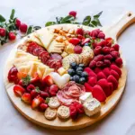Add heart-shaped cookies or chocolates to your Valentine’s Day charcuterie board for a sweet touch! Fresh strawberries and pink-hued radishes also enhance the festive feel while complementing savory items beautifully.